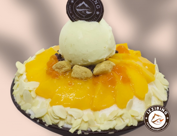 Bingsu topping gồm hạnh nhân, nhãn không hạt giòn tan và bánh gạo jelly dừa thơm béo.
