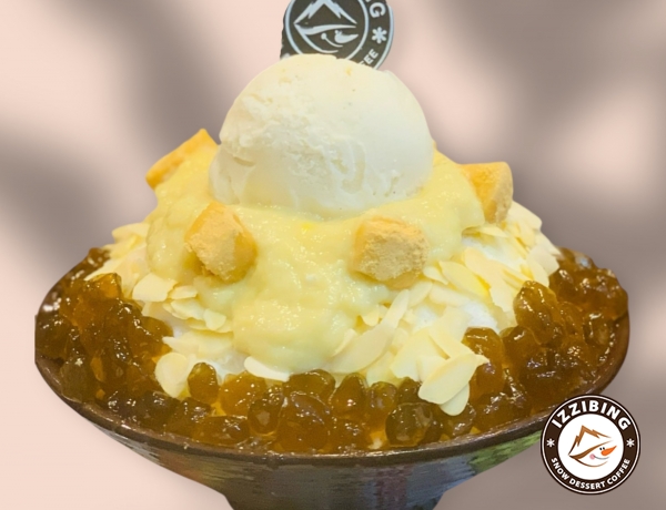 Bingsu topping gồm hạnh nhân, nhãn không hạt giòn tan và bánh gạo jelly dừa thơm béo.
